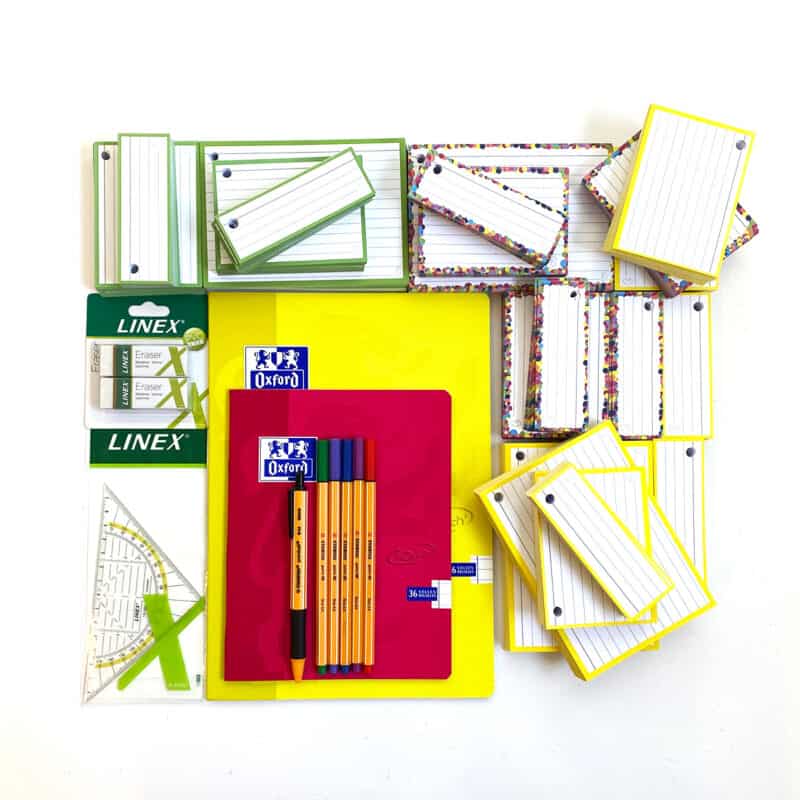 Voor jullie is het leuk dat jullie zelf een pakket kunnen samenstellen met Linex en Oxford, maar voor ons is het nog leuker om de notitieboeken en de accessoires de deur uit te zien vliegen. De bestellingen pakken wij met alle liefde in, vooral omdat we er zelf ook zo vrolijk van worden. Zo zie je maar dat jullie ons onbewust ontzettend blij maken ‘achter de schermen’. Alle toffe combinaties met accessoires, notitieboeken en flashcards die jullie maken.