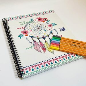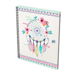 Soms krijgen we iets in onze handen waar we op slag verliefd op worden. En met deze special edition Boho Chic Spiraalblok van Oxford was het meteen raak. De voorkant is voorzien van een kleurrijke dromenvanger, met mooie pastel tinten. Prachtig ontwerp, schitterende afwerking en vooral de kaft zijn we erg van onder de indruk. Een serieus stevige omslag én met een fluweelzachte laag.