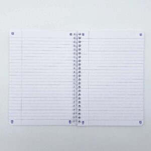- De witte dubbele spiraalbinding zorgt ervoor dat het notebook plat blijft liggen of 360° omgeklapt kan worden.