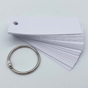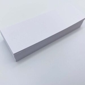 Flashcards in half formaat van Leitner flashcards, volledig blanco. Ze zijn 3,5 bij 10,5 cm en gemaakt van dik, 300 grams papier. De kaartjes zijn volledig blanco en aan de voor-en achterzijde gelijk.
