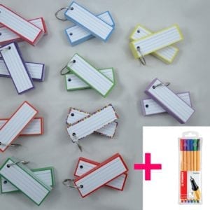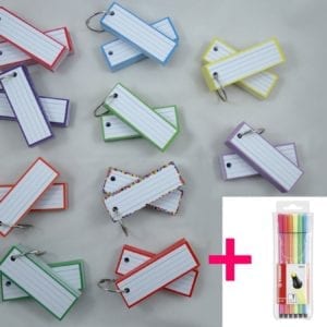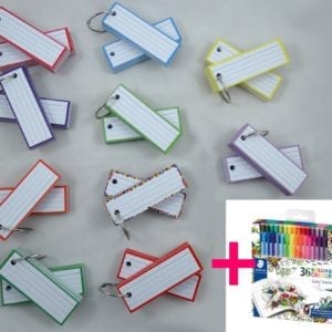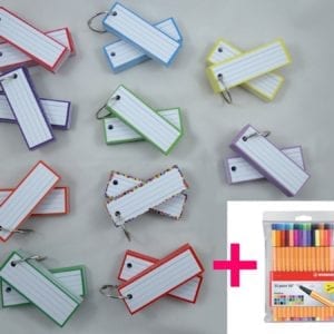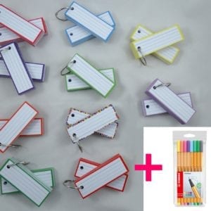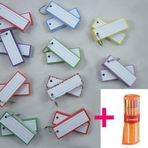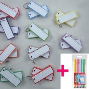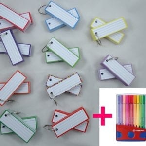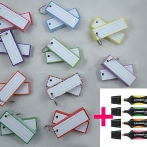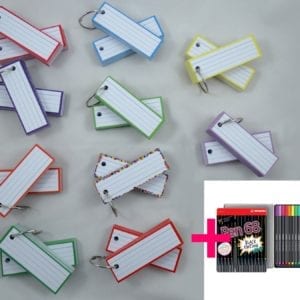 Alle flashcards zijn geperforeerd (hebben een gaatje) en je ontvangt 5 klikringen per 500 flashcards.