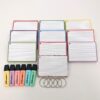 1000 flashcards in A6 formaat (15 bij 10 cm groot), gemaakt van dik, 300 grams papier.