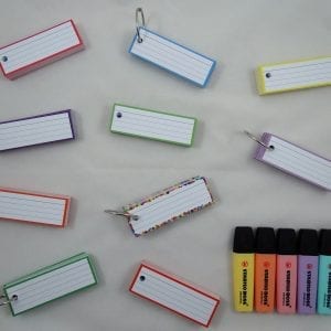 De 500 halve flashcards worden voor je geperforeerd en je ontvangt 5 metalen klikringen van 40mm doorsnede. Elke ring kan 100 geperforeerde flashcards bij elkaar houden.