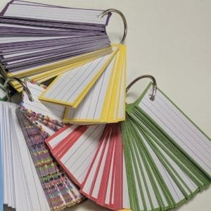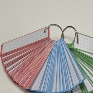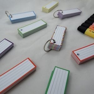 500 flashcards in half formaat (waaiers) van 3,5 bij 10,5 cm groot, gemaakt van dik, 300 grams papier.