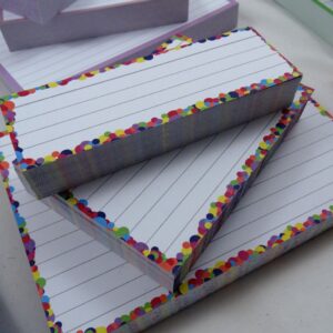 500 flashcards in A6 formaat (15 bij 10,5 cm groot), gemaakt van dik, 300 grams papier.