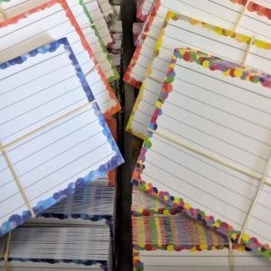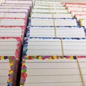 Van elke kleur zitten drie pakjes á 50 stuks in het pakket. Alle flashcards zijn A7 formaat, dubbelzijdig gelinieerd en gemaakt van dik, 300 grams papier. Deze vrolijke Leitner flashcards zijn ideaal als systeemkaartjes, leerkaartjes en steekkaartjes.