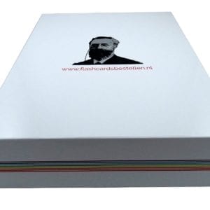 500 flashcards in A7 formaat (10,5 bij 7,4 cm groot), gemaakt van dik, 300 grams papier.