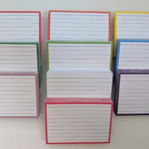 Flashcards pakket kleur 500 stuks in A7 formaat, verdeeld over 10 verschillende kleuren.