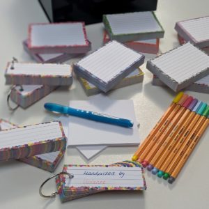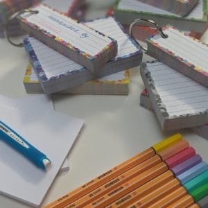 - De tabs steken ruim een centimeter boven de flashcards uit, zodat je voldoende ruimte hebt om op te schrijven.