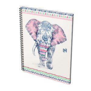OXFORD Boho Chic Spiraalblok Olifant – Uniek Design – A4+ Formaat – Gelinieerd – 120 pagina’s