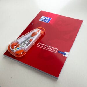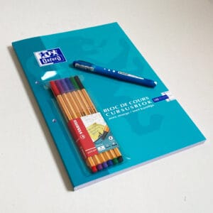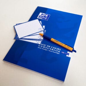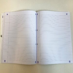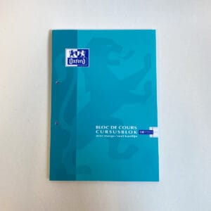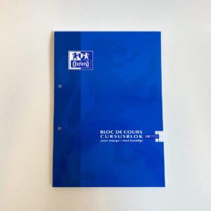 Ideaal gelinieerd cursusblok met voor thuis en in de schoolbanken. Het blok heeft een zachte kartonnen kaft, heeft 100 pagina’s en is gelijmd aan de linkerkant. Dubbelzijdig gelinieerd, met 35 lijnen per pagina en een kantlijn. Het papier is het bekende Oxford Optik paper. Superglad, extra wit en drukt niet door.