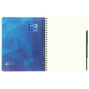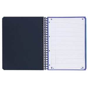 Het blok heeft een kunststof blauwe kaft, 240 pagina’s en een stevige spiraal. Dubbelzijdig gelinieerd, met 35 lijnen per pagina en een kantlijn. Het papier is het bekende Oxford Optik paper. Superglad, extra wit en drukt niet door.