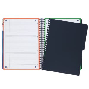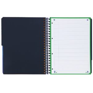 Oxford Projectbook A4 formaat, gelinieerd (35 lijnen per pagina), gebonden met spiraal, 4 secties in 4 kleuren met tabbladen, 240 pagina’s (120 vel) dik en 4 gaats geperforeerd