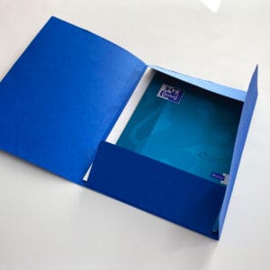 De mappen hebben een zelfklevend etiket en zijn superhandig in gebruik. Je kunt er tot 200 pagina’s in kwijt en door het stevige materiaal zijn ze slijt en scheurvast. De map heeft twee elastieken om hem dicht te houden, de rug van de map past zich aan aan de hoeveelheid papier die erin zit.