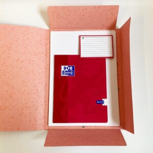 De mappen hebben een zelfklevend etiket en zijn superhandig in gebruik. Je kunt er tot 200 pagina’s in kwijt en door het stevige materiaal zijn ze slijt en scheurvast. De map heeft twee elastieken om hem dicht te houden, de rug van de map past zich aan aan de hoeveelheid papier die erin zit.