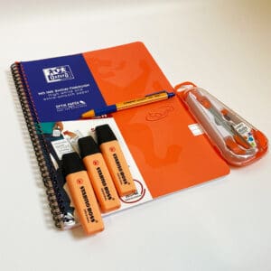 Gelinieerd spiraalblok met zachte oranje Touch’ kaft en stevige spiraal voor thuis en in de schoolbanken. Het blok heeft een handige en stevige dubbele spiraal. Dubbelzijdig gelinieerd, 140 pagina’s (70 vel) met 35 lijnen per pagina en een kantlijn. Het papier is het bekende Oxford Optik paper. Superglad, extra wit en drukt niet door.