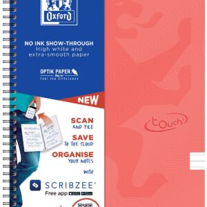 OXFORD TOUCH SPIRAALBLOK – A4 formaat – Soepele Kartonnen Touch’ kaft – Dubbelspiraal – Gelijnd – 70 vel – SCRIBZEE® Compatible – Oranje