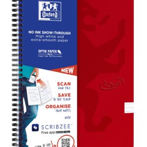 OXFORD TOUCH SPIRAALBLOK – A4 formaat – Soepele Kartonnen Touch’ kaft – Dubbelspiraal – Gelijnd – 70 vel – SCRIBZEE® Compatible – Rood