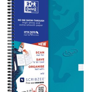OXFORD TOUCH SPIRAALBLOK – A4 formaat – Soepele Kartonnen Touch’ kaft – Dubbelspiraal – Geruit 5mm x 5mm- 70 vel – SCRIBZEE® Compatible – Aqua