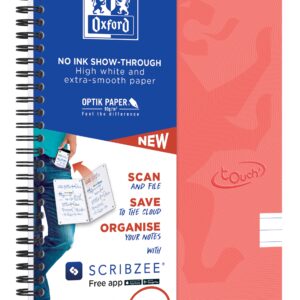 OXFORD TOUCH SPIRAALBLOK – A5 formaat – Soepele Kartonnen Touch’ kaft – Dubbelspiraal – Gelijnd – 70 vel – SCRIBZEE® Compatible – Oranje