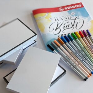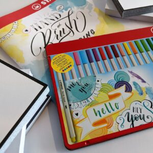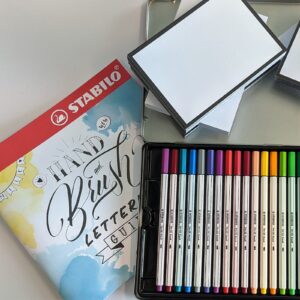 Samen met Stabilo mogen wij de limited edition Hand & Brushlettering Guide weggeven bij dit unieke pakket. Je ontvangt de Stabilo Brush stiften, 5 pakjes flashcards in A6 formaat én het boekje voor een geweldige pakketprijs.