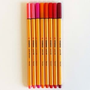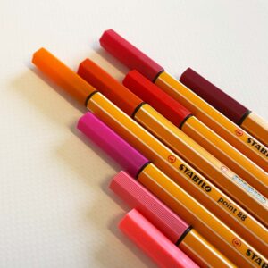 In Europa is het de meest gebruikte fineliner die er bestaat. De zeskantige vorm van de STABILO point 88 zorgt voor een comfortabele grip. Met 8 geweldige rode kleuren vind je altijd de ideale kleur. Dankzij de lange ‘cap-off’ tijd, hoef je je geen zorgen te maken dat je pen snel uitdroogt.
