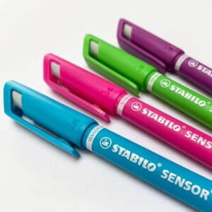 De STABILO SENSOR fineliner turquoise met meeverende schrijfpunt biedt zekerheid tijdens het schrijven – de punt zal nooit buigen of breken. Het is een klasse apart. Perfect geschikt voor mensen die intensief schrijven, maar ook voor diegenen die graag artistiek bezig zijn en ontspannen met het inkleuren of tekenen van een mandala. De Stabilo Sensor heeft een schrijfbreedte van 0,3 mm en een modern design.