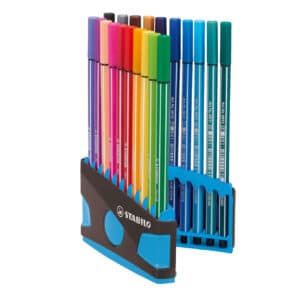 De STABILO pen 68 Color Parade viltstiften in 20 kleuren met een blauwe antraciet case
