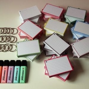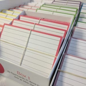 De best verkochte items hebben we nu gecombineerd tot één goede deal én verpakt in ‘The Box’, nu samen met flinke korting. 1500 Leitner Flashcards, met perforatie en 15 klikringen en schrijfwaren naar keuze. Je krijgt minimaal 15% korting op ieder item.