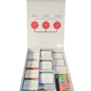 The Box van Flashcardsbestellen.nl! Met daadwerkelijk álles wat je nodig hebt om te leren met flashcards én om ze veilig te bewaren. Volledig op maat gemaakt en daarom past alles perfect. Als de box besteld wordt vullen wij hem alvast met de flashcards en accessoires die erbij zijn besteld.