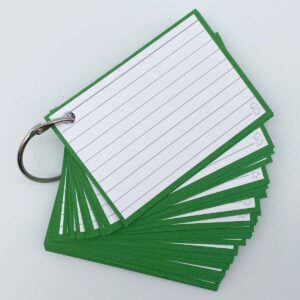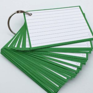 Groene flashcards A7 formaat, gelinieerd met een groene rand van Leitner®