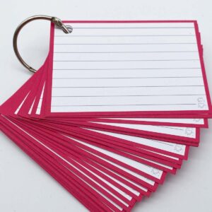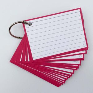 Roze Leitner flashcards A7 formaat. Gemaakt van dik, 300 grams papier, A7 formaat en aan beide kanten gelinieerd. De kaartjes hebben grijze lijntjes, een roze rand en zijn aan de voor-en achterzijde gelijk. Hierdoor zijn deze Leitner flashcards ideaal als systeemkaartjes, leerkaartjes en steekkaartjes.