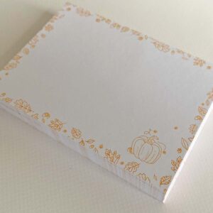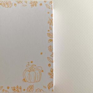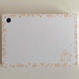 Deze leuke gele Leitner flashcards hebben een nieuwe print, gebaseerd op de herfst. A7 formaat, gemaakt van dik 300 grams papier. Aan beide zijden blanco en de voorkant is voorzien van een illustratie van een pompoen. De rand is gemaakt van bladeren, hierdoor zijn deze vrolijke Leitner flashcards ideaal als systeemkaartjes, leerkaartjes, steekkaartjes en tekenkaartjes😉