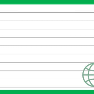 Leitner flashcards voor Aardrijkskunde, gemaakt van dik, 300 grams papier, A7 formaat en aan beide kanten gelinieerd. De kaartjes hebben een groene rand en een globe als watermerk aan de voorzijde. Hierdoor zijn deze Leitner flashcards ideaal als systeemkaartjes, leerkaartjes en steekkaartjes.