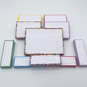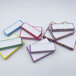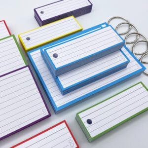 Gebruik flashcards om efficiënt en leuker te leren. Gebruik de grote flashcards (A6 formaat) voor korte samenvattingen, de standaard flashcards (A7 formaat) voor je definities en de halve flashcards voor woordjes en begrippen.