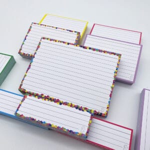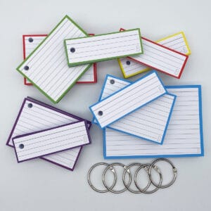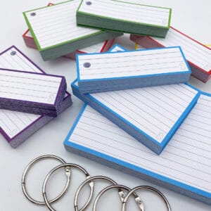- 1 pakje A6 formaat flashcards (10×15 cm) á 50 stuks per pakje